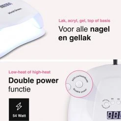 De meeste UV lamp nageldrogers zijn alleen geschikt voor gellak. Deze van Vivid Green daarentegen is geschikt voor alle soorten. Hierdoor hoef jij niet na te denken of jou gekozen lakje wel geschikt is voor onder de nagellamp.