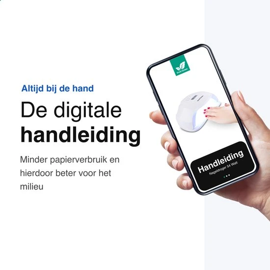 ✔Inhoud: 1x Nageldroger 54W – 1x Adapter – 1x Digitale handleiding