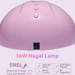 Doe je zelf je nagels en zoek je een goedkope, maar goede LED UV nagellamp? Dan is deze geschikt voor jou. Zowel gelnagels als gellak nagels drogen perfect met deze lamp.